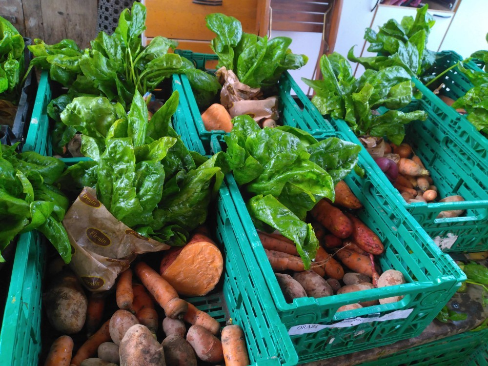 - Panier à 5 € avec : 500g de pommes de terre bio, 1 salade d’hiver, 1 betterave rouge bio, 1 bouquet de blettes bio